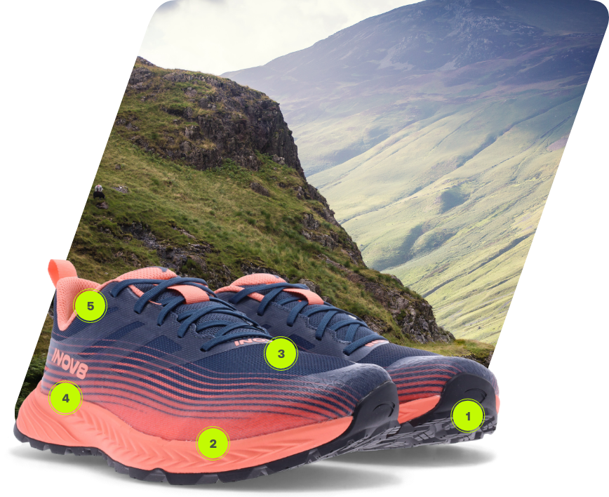 The TRAILFLY SPEED hugs the natural contours of your foot, locking you in at the heel and then widening at the toes. This anatomical fit allows your feet to splay and feel the ground, while still giving you that secure feel that you need on technical trails.